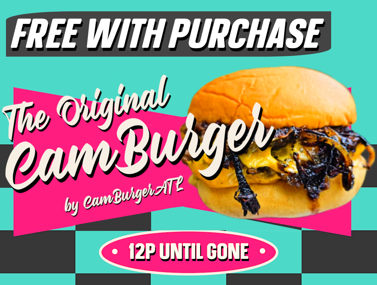 Back by popular demand, Camburger ATL will be making his famous burgers in the back parking lot! Burgers are FREE with proof of purchase. Drinks and non-meat options available. Follow @camburgeratl