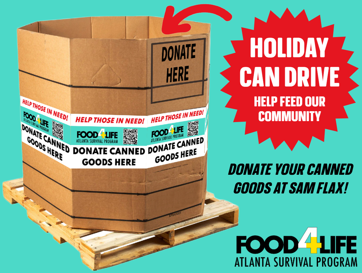 NEW this year! Please bring canned goods for our first-ever Holiday Can Drive. All donations go directly to Food4Life, an Atlanta Survival Program. Click here to learn more
